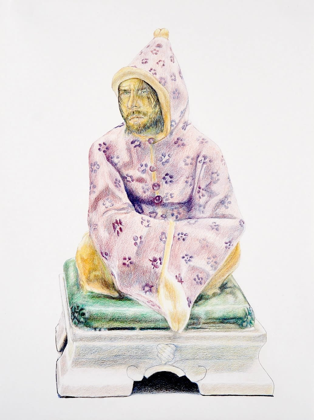 The Guardians is a drawing series, which renders mid-18th century Meissen figurines that are supposed be Chinese/Other. These porcelain figures are in the permanent collection at the Metropolitan Museum of Art in the European Decorative Arts. In these drawings I intervened and replaced the original face (which was based on some German fantastical stereotype of what East Asians should look like), with the faces of Hollywood actors. This work ties Chinoiserie to yellowface and whitewashing and addresses the long racist and hurtful practice in film television, and theater where white actors of European descent are cast in Asian/Pacific Islander character roles. This system has long been influenced by white supremacy and must be scrutinised and fixed so that BIPOC are neither rendered invisible in mainstream western media, nor hurt by insidious cliches.